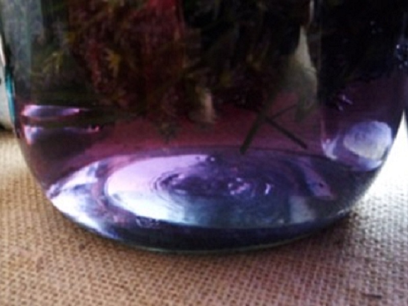 Sklenici první den nechávám na teplém slunečném místě. Ke konci dne začne být výluh modrofialový a to je čas přenést sklenici do místnosti s příjemnou pokojovou teplotou, už však ne na sluníčku. Někdy se na povrchu udělá povlak, lžící ho vyberte a dolejte vodu. Ke konci druhého dne už je výluh tmavě zabarvený. Slejte ho přes plátno do hrnce a zahřejte na teplotu kolem 70 stupňů. Přidejte cukr a kyselinu citronovou (pro uchování na zimu sirupu svědčí lépe) nebo citronovou šťávu, pokud budete pít sirup hned po vyrobení. Nechte dobře rozpustit a ještě teplý sirup naplňte do lahví.