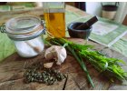 Kromě oleje přijde do pesta také ještě česnek a sůl. Pro chuť a také aby bylinky vydržely déle čerstvé. Používám mořskou sůl, kterou jsem si oblíbila proto, že se dá koupit samotná, bez dodatečně přidaných minerálů, jódu a flóru. Česnek jistě není potřeba více představovat. Čerstvý a křupavý je v pestu znát, chuti a také na hustotě, pesto je o něco krémovější.